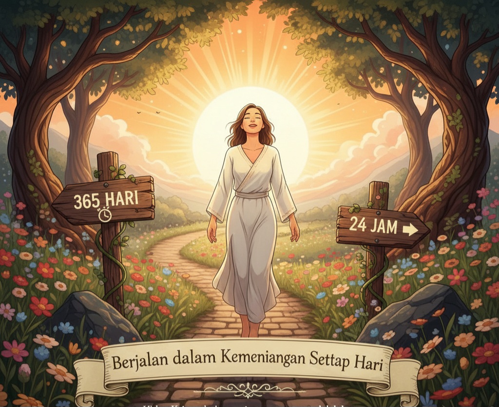 Kemenangan itu bukan hadiah masa depan; itu sumber hidup hari ini. Kemenangan itu seperti udara yang harus dihirup setiap saat. Ketika seseorang hidup dari kemenangan Kristus, hidupnya berubah. Bukan tanpa pergumulan, tetapi ia tidak lagi ditelan pergumulan. Bukan tanpa kelemahan, tetapi kelemahan tidak lagi menjadi pintu bagi tuduhan. Ini bukan tanpa godaan, tetapi godaan tidak lagi menarik, karena yang memuaskan hatinya adalah Dia yang berjalan bersamanya setiap hari: 365 hari setahun, 24 jam sehari.