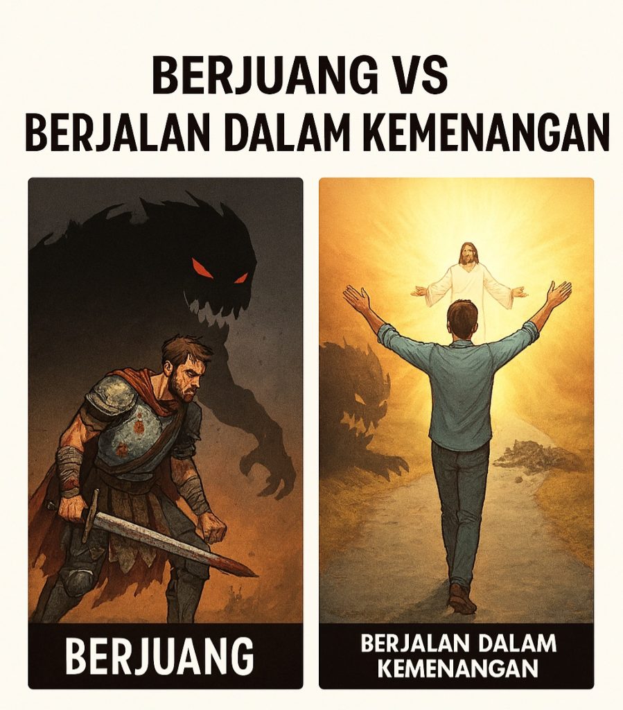 Di sinilah masuknya satu konsep yang sangat penting tetapi sering disalahpahami: berjalan dalam kemenangan, bukan berjuang mengejar kemenangan.