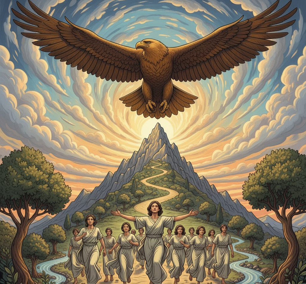 “Seperti rajawali yang mengajar anaknya dan melayang-layang di atas anak-anaknya, Ia mengembangkan sayap-Nya, menanggungnya di atas kepaknya.” Ulangan 32:11