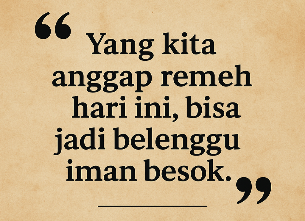 Begitu juga dalam hidup rohani. Ada hal-hal yang terlihat sepele, tapi lama-lama mulai mengaburkan pandangan kita terhadap Tuhan.
