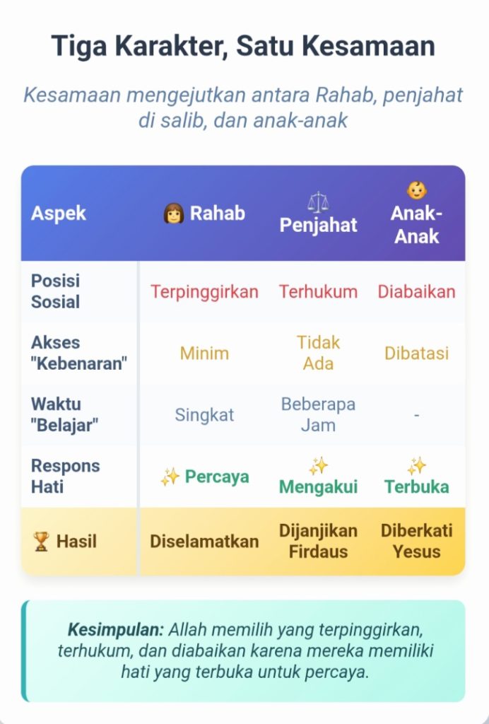 Mari kita lihat kesamaan mengejutkan antara Rahab, penjahat di salib, dan anak-anak: