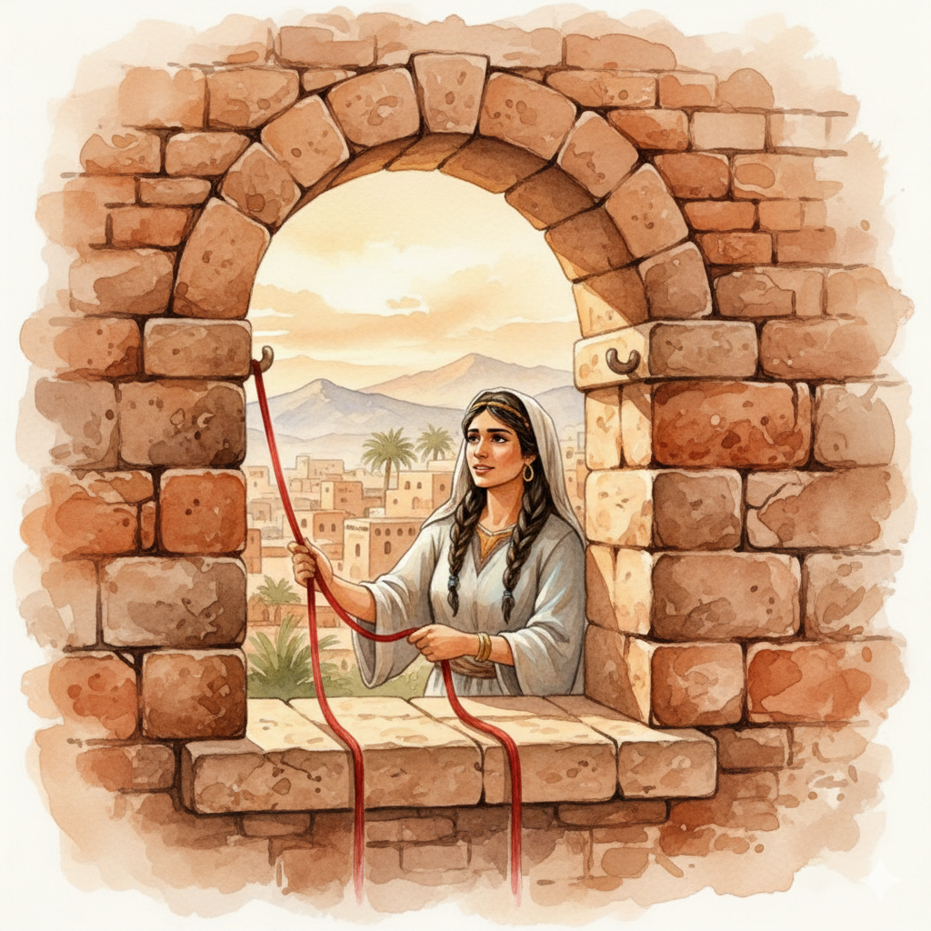 - Rahab yang berdiri di tembok kota yang akan runtuh