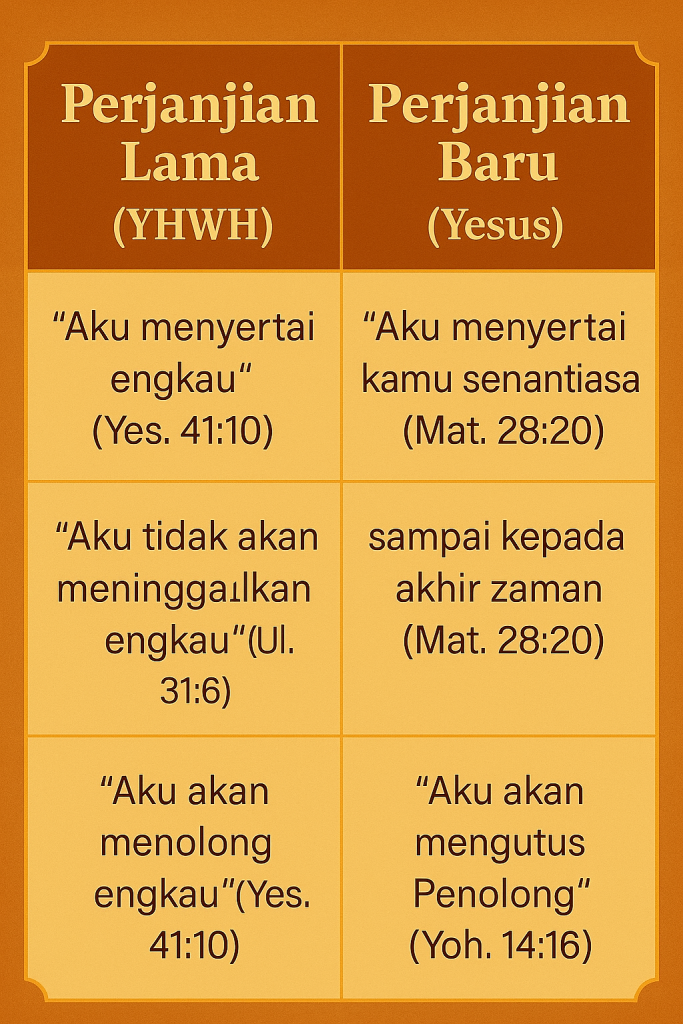 Sepanjang sejarah keselamatan, hanya YHWH yang membuat janji penyertaan personal dan kekal. Ketika Yesus menggunakan formula yang sama, Dia menempatkan diri-Nya dalam posisi yang sama dengan Allah Perjanjian Lama.