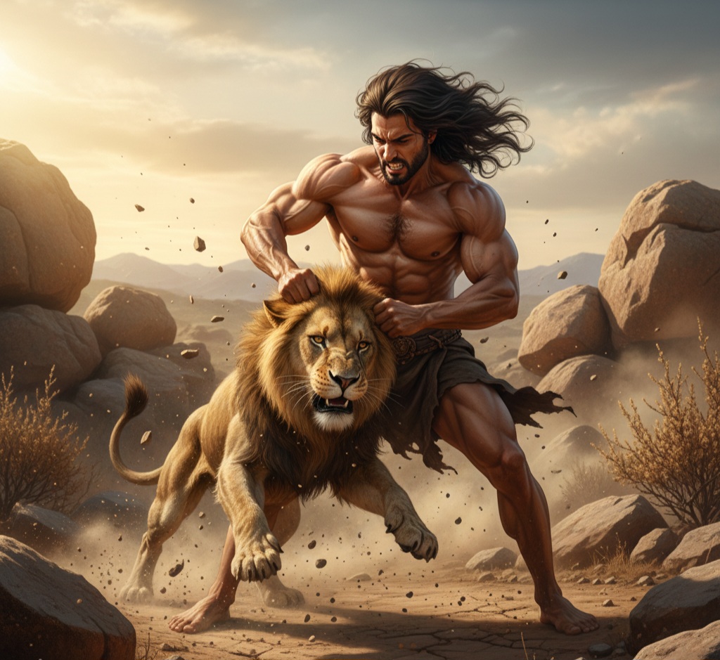Ketika Simson muda berjalan ke Timna, seekor singa mengaum menyerangnya. Alkitab mencatat momen luar biasa itu: “Maka Roh TUHAN berkuasa atas dia, sehingga singa itu dicabik-cabiknya seperti orang mencabik anak kambing sedang tangannya tidak memegang apa-apa.” Hakim-Hakim 14:6