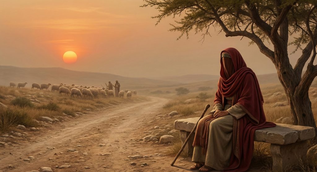 Tamar mendengar kabar itu. Ia duduk di rumah ayahnya, memandang api unggun kecil. Hatinya penuh amarah karena keputusasaan. “Yehuda telah merampas hakku,” gumamnya.