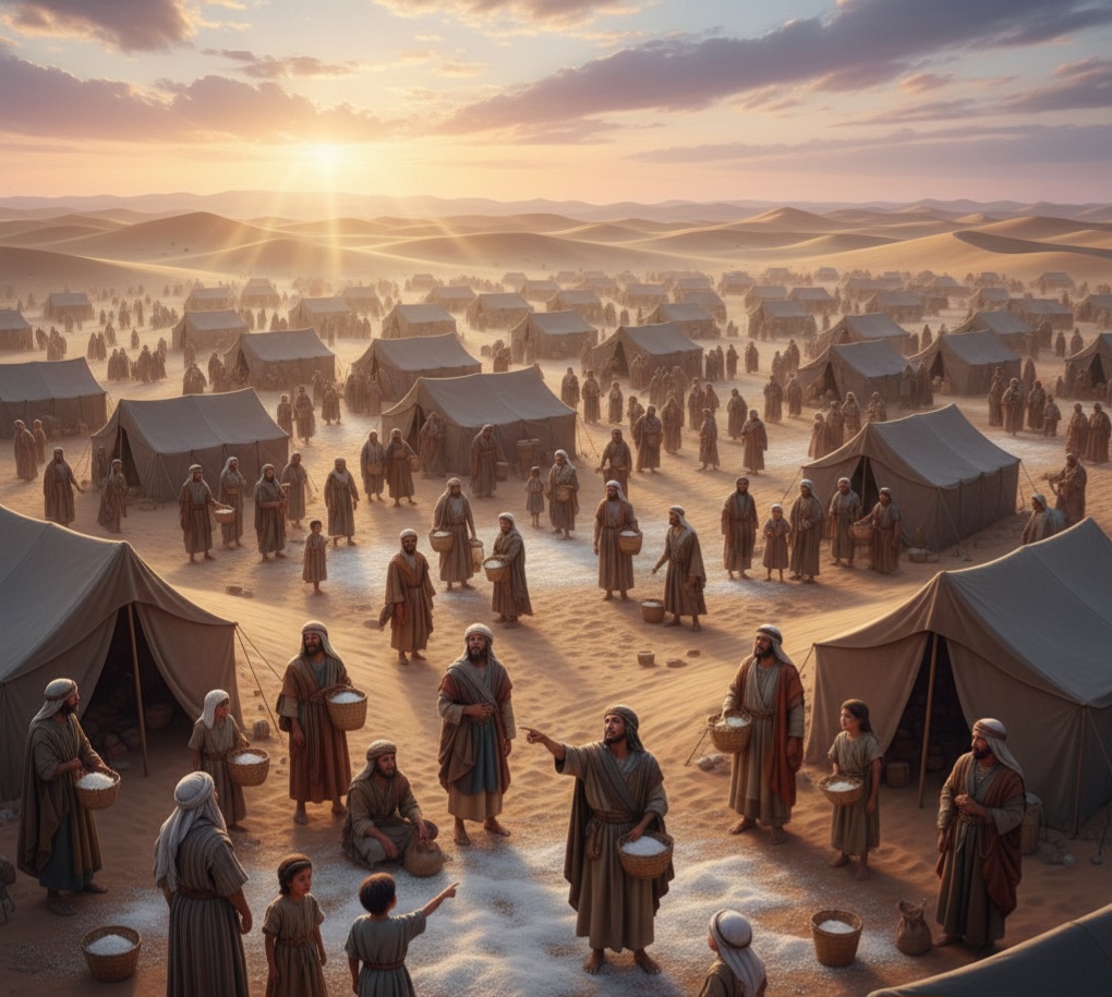 Namun setiap pagi, manna turun dari langit. Gurun yang kosong menjadi meja makan surgawi.