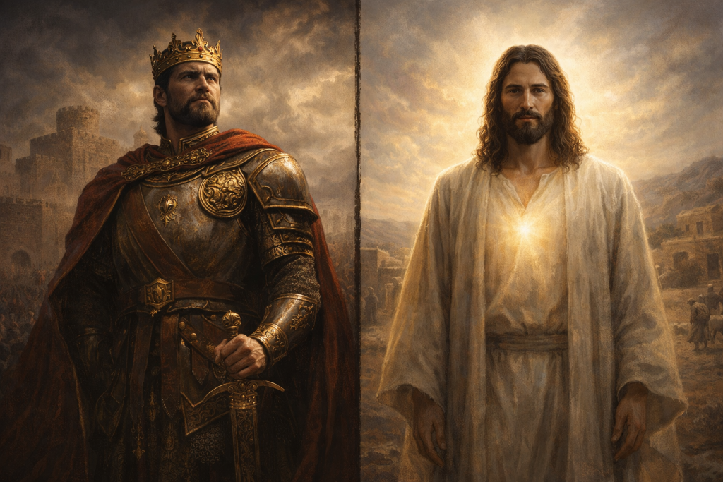 Sebaliknya, Daud yang disebut “seorang yang berkenan di hati Allah” selalu mengakui Allah sebagai Raja sejati, meskipun dia sendiri adalah raja manusia. Yesus adalah Daud yang lebih besar, Raja yang sempurna, yang tidak pernah gagal.